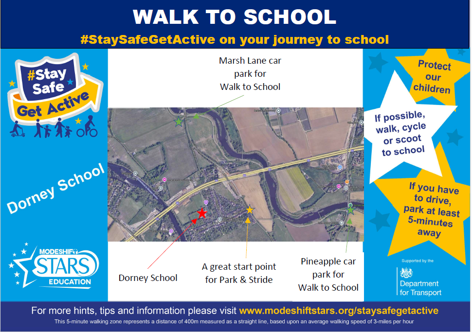 At Dorney School, we would like to reduce the number of children travelling to and from school by car as we know traffic and parking around the school is a huge concern.